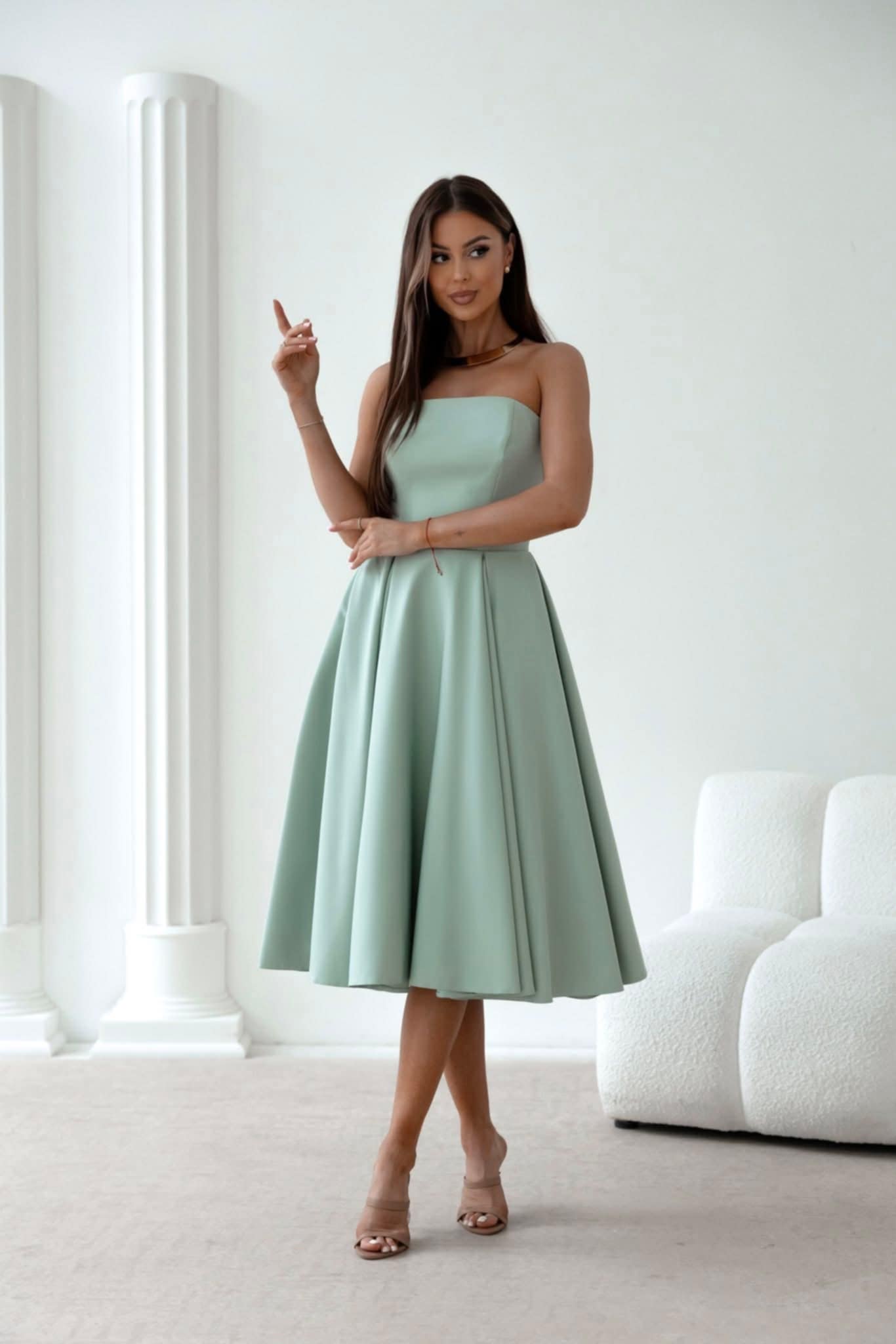 CHANELL – sukienka gorsetowa o długości midi w kolorze szałwii