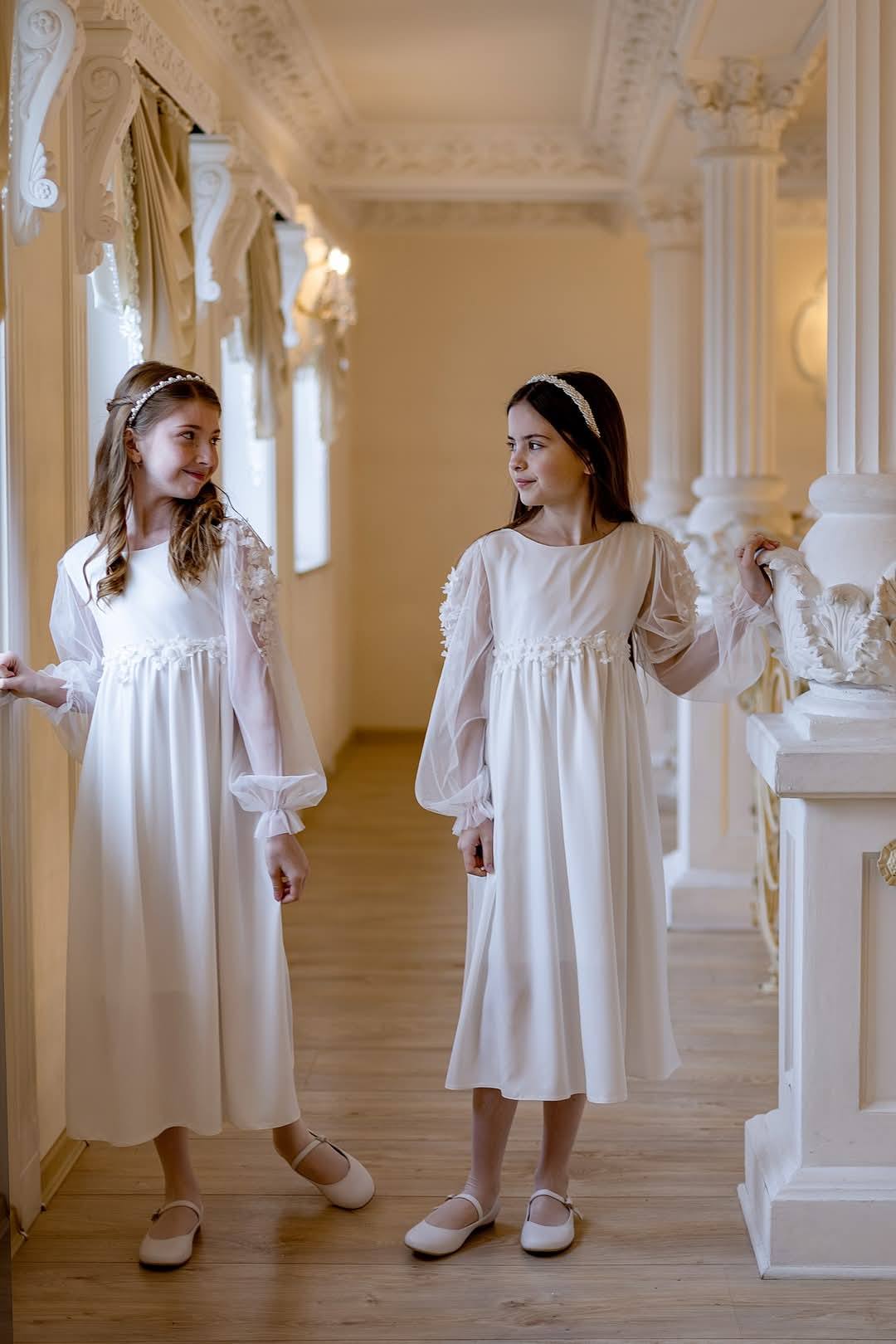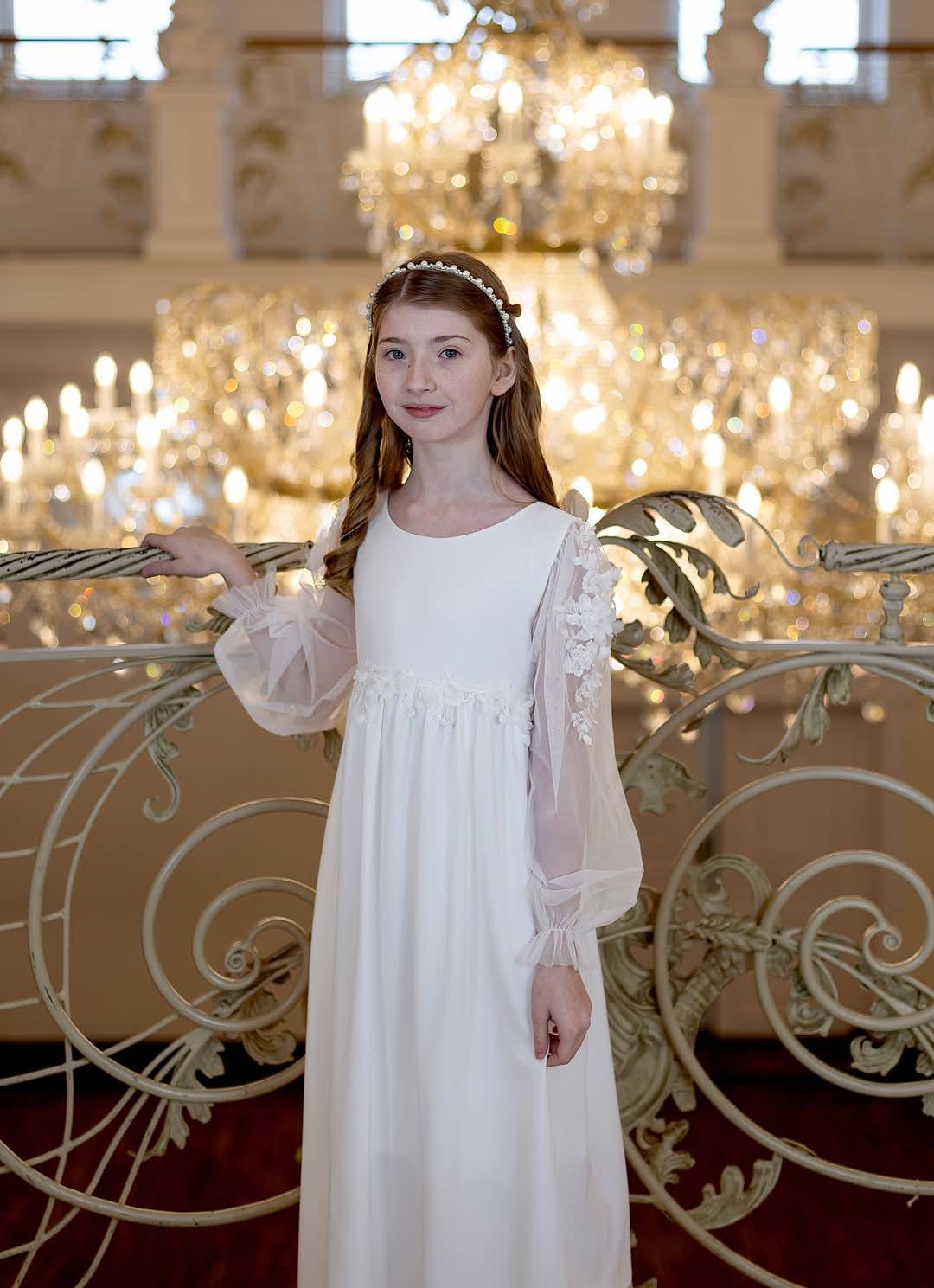 🌸 Delikatny kolor: Sukienka w odcieniu śmietanki, która podkreśla jej elegancję i dziewczęcy charakter.