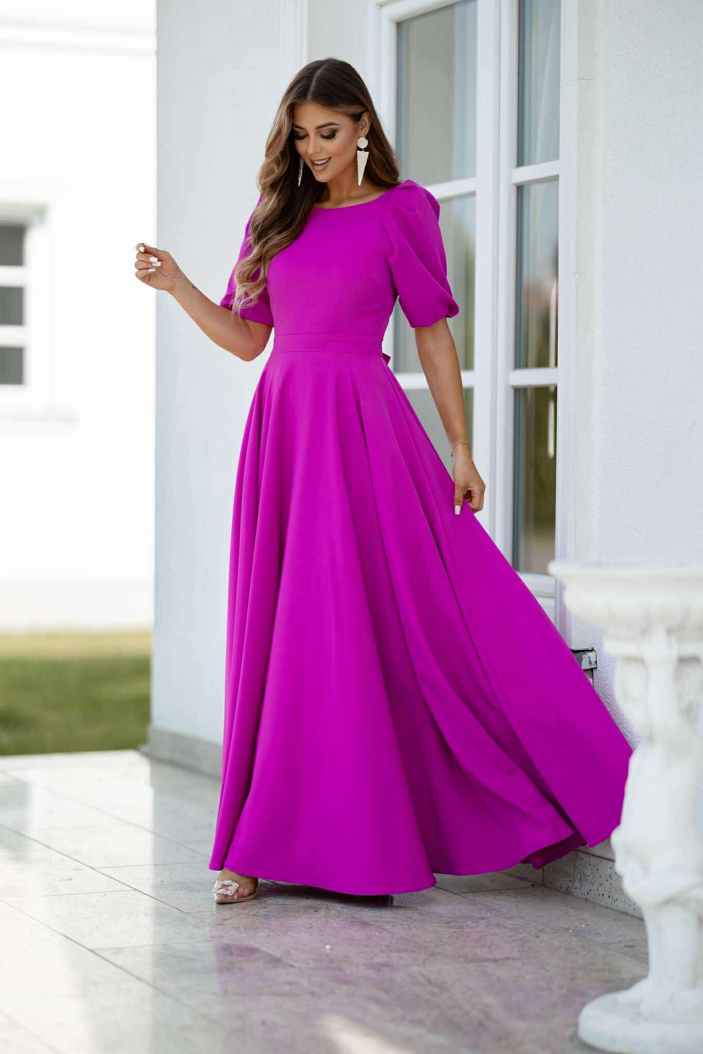JOLENE – suknia maxi z krótkim, bufiastym rękawkiem w kolorze fuksji