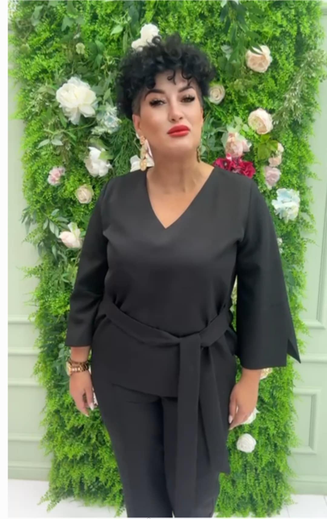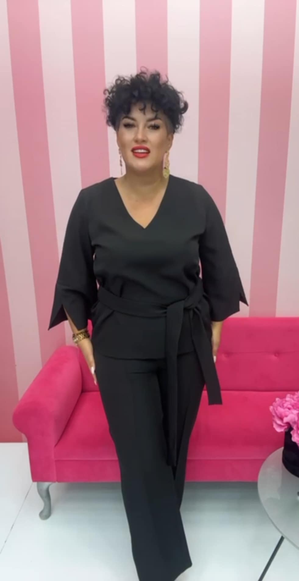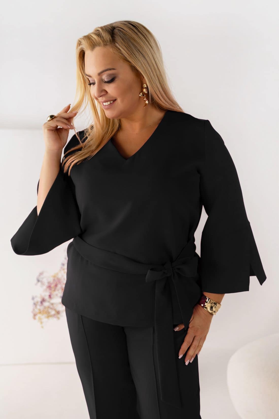 Zarówno bluzka, jak i spodnie zostały zaprojektowane z myślą o sylwetkach plus size, dlatego doskonale leżą i nie krępują ruchów. Bluzka posiada elegancko rozszerzane rękawy, a wszyty pasek można zawiązać z przodu lub z tyłu — w zależności od okazji lub nastroju.