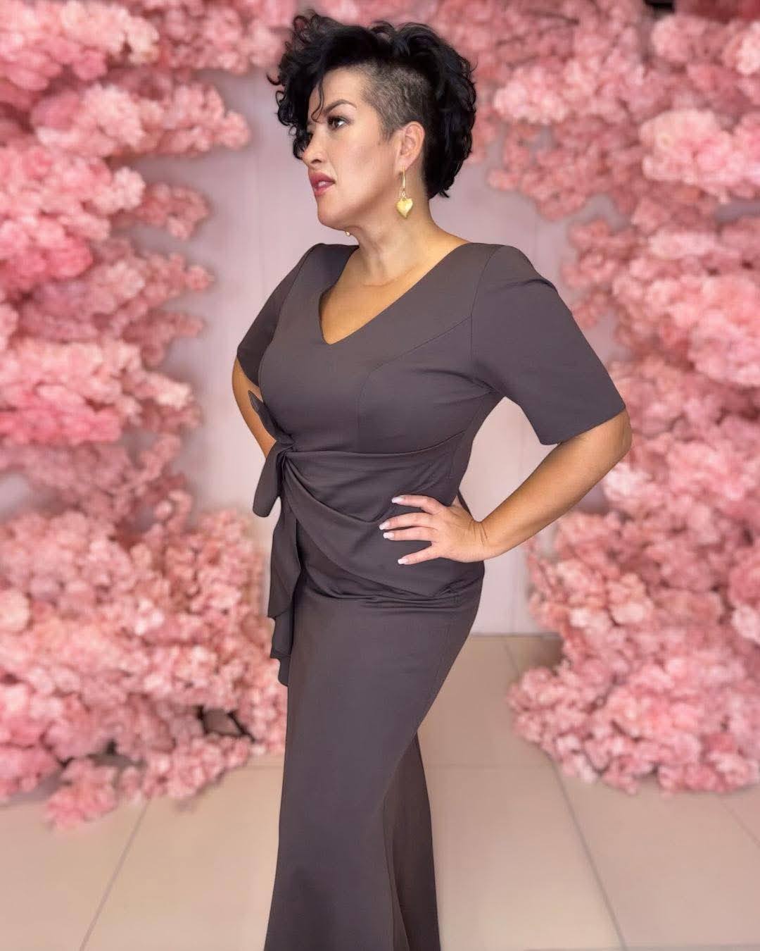 Sukienka MONIA łączy nowoczesny krój z ponadczasową elegancją. Jej czekoladowy kolor jest głęboki i szlachetny, a jednocześnie subtelny – dzięki temu pasuje na wiele okazji. Co więcej, doskonale komponuje się z jasnymi dodatkami, tworząc stylowy kontrast.