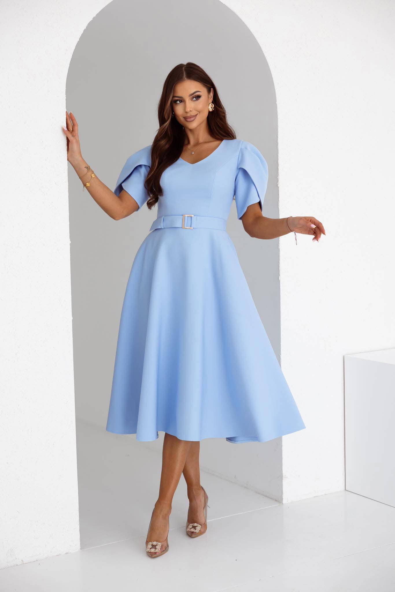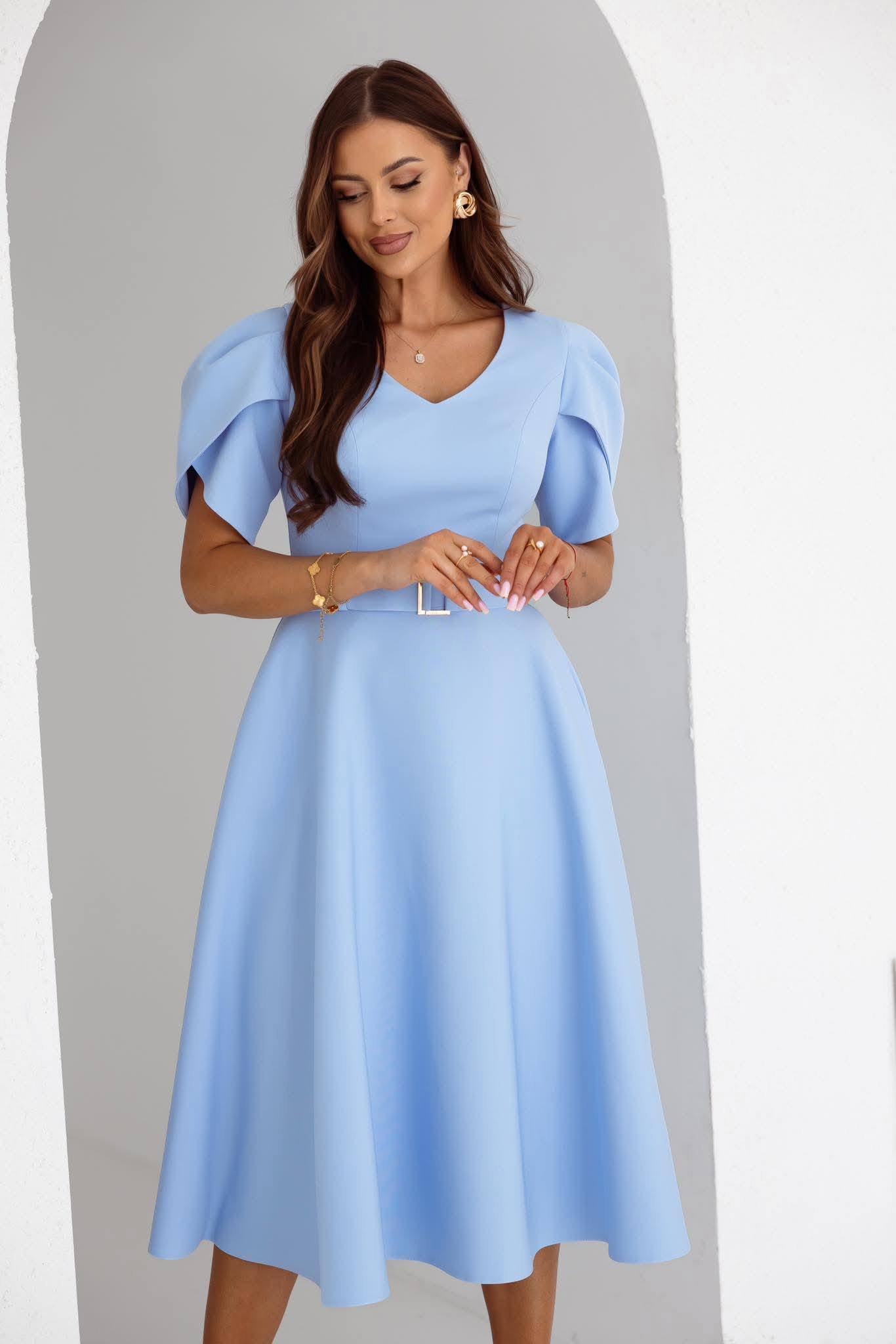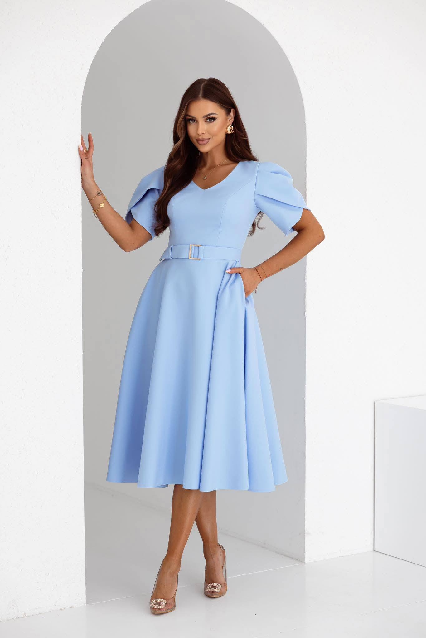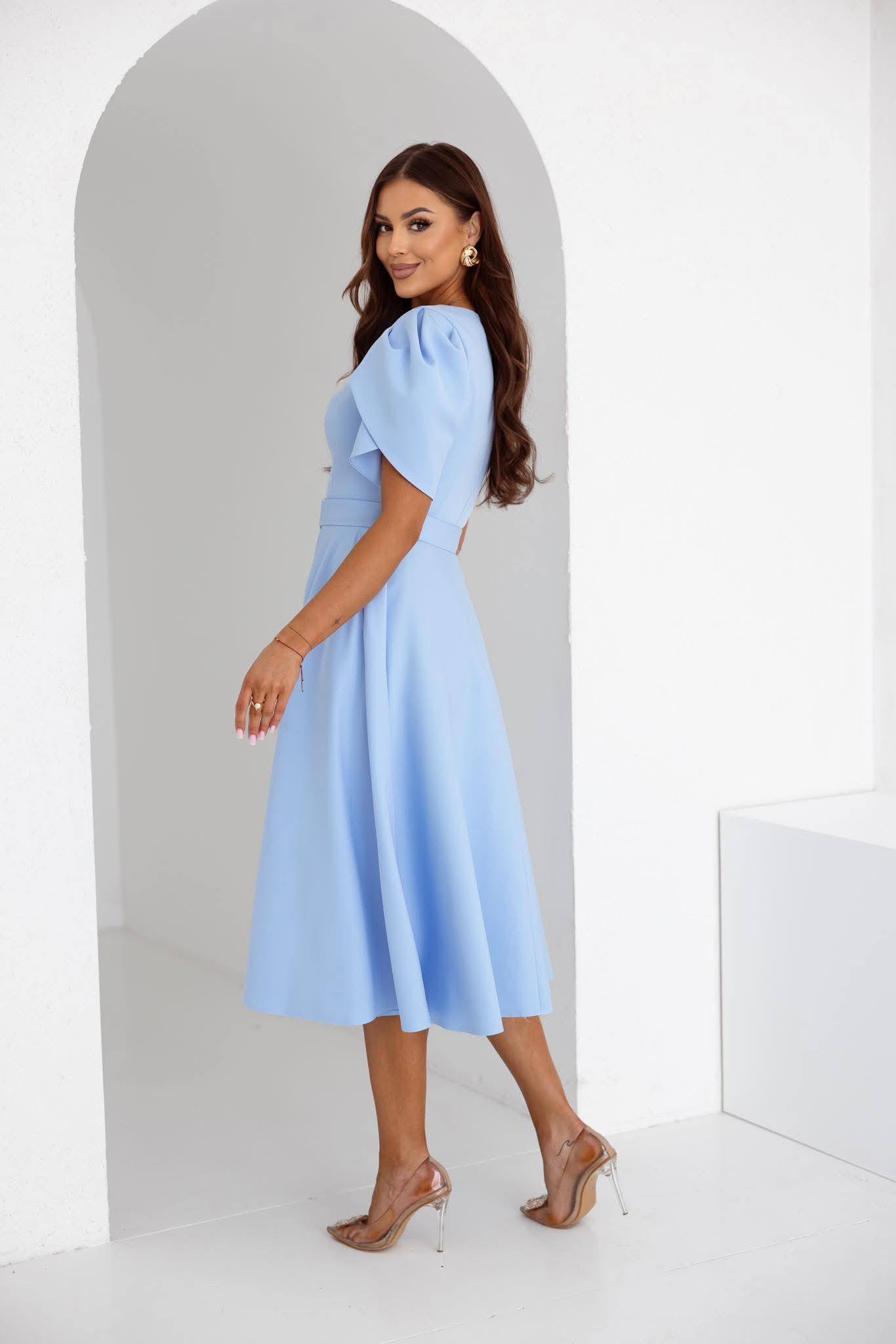 SARA – sukienka o długości midi z rękawkiem w kolorze błękitnym